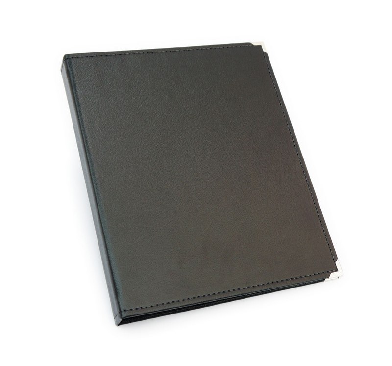 Produzida com capa dura cartonada e revestida em tecido resistente e impermeável, é feita a mão com acabamento todo em costura e cantoneiras de metal.